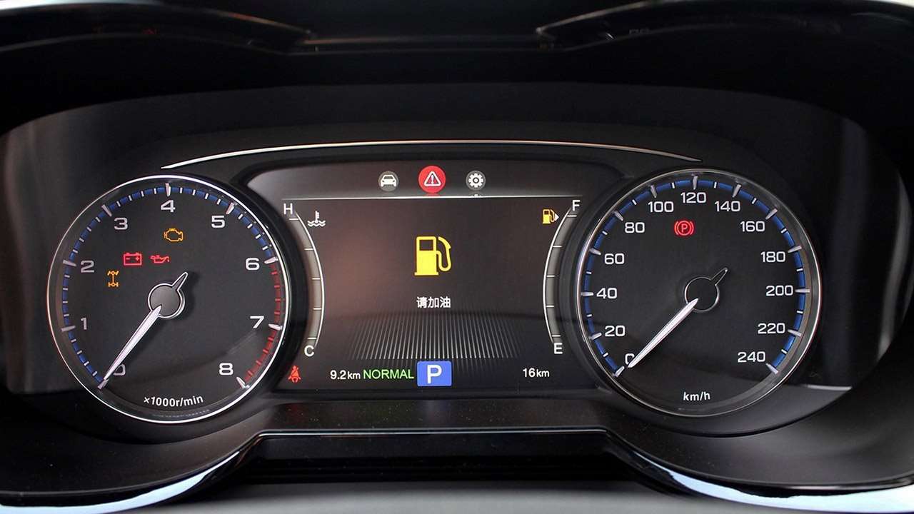 Напоследок рассмотрим водительское место GAC GS8 2019. К сожалению, полностью цифровой приборной панели ожидать не стоит, так как это подняло бы цену кроссовера выше запланированной. Сама ж приборка состоит из двух аналоговых приборов (спидометр и тахометр), а так же цветного 8″ по центру. В базовой комплектации дисплей монохромный на 5″, тем не менее, это вполне достаточно для вывода самой необходимой информации.