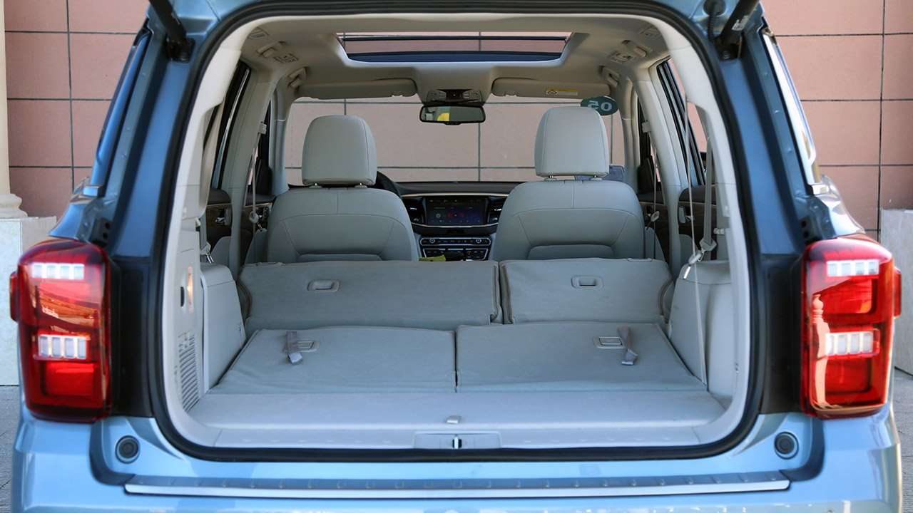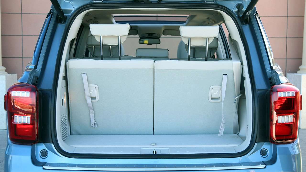 Вместительность салона ограничила объем багажника, поэтому для транспортировки грузов объемом до 2000 литров приходится демонтировать сиденья второго и третьего ряда.