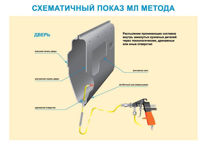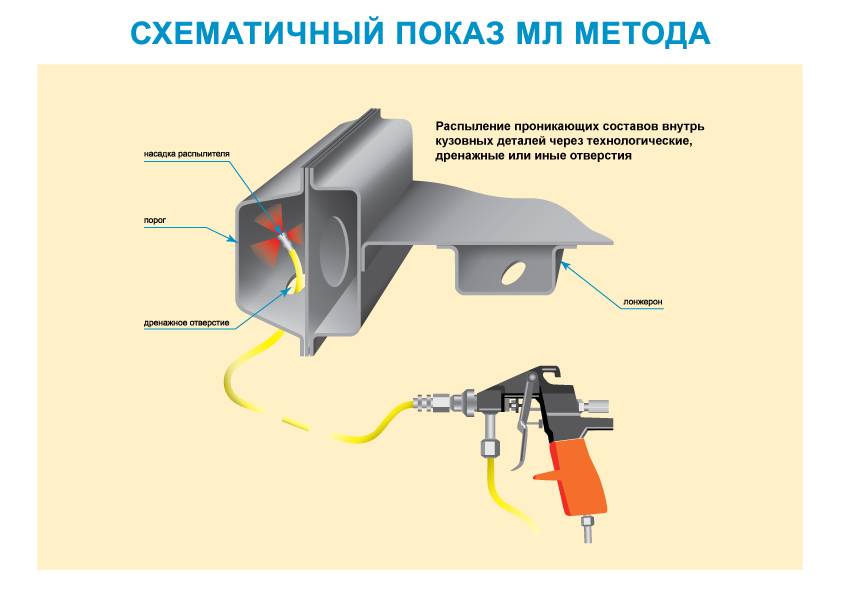 - Простое нанесение. В продаже встречаются баллончики с распылителем и под пистолет для обработки скрытых полостей кузова автомобиля.