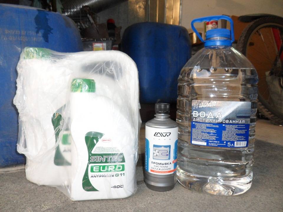 Для разбавления используется дистиллированная вода, продающаяся в автомобильных или хозяйственных магазинах. Использование водопроводной, колодезной или родниковой воды чревато неприятностями. Микроэлементы, содержащиеся в воде, быстро оседают на стенках агрегата, что приводит к снижению эффекта охлаждения.