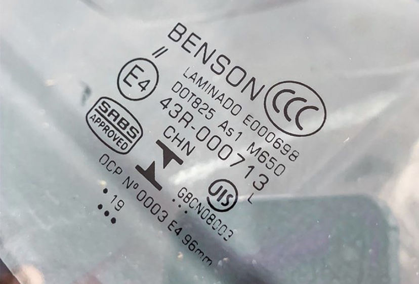 Маркировка стекла китайской компании Benson. Можно смело выбирать этот бренд, если замена требуется, а средств на премиальное стекло пока нет. Но всё же с китайскими производителями стоит быть аккуратнее — доверяйте только проверенным фирмам.