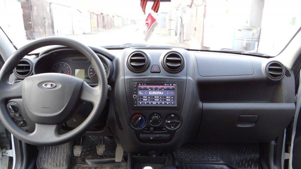 Если внешность была хоть как-то переработана, то интерьер идентичен «Калине-2» за исключением некоторых моментов. Так, здесь используется все тот же пластик с серебристыми вставками, круглые дефлекторы, панель приборов с двумя колодцами и трехспицевый руль. Последний не оснащен кнопками даже в топовых комплектациях, что вызывает недовольство. Нелишним было бы наличие регулятора громкости динамиков и кнопки приема вызовов. Кстати, эта машина оснащается большим мультимедиа-дисплеем с блютузом только в топовых версиях. Самые дешевые «Гранты» и вовсе идут без какой-либо акустики. Зато уже в базе имеется регулировка рулевого колеса (пускай и механическая, но все же).