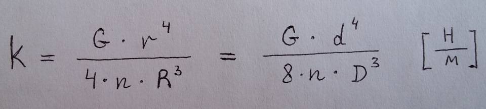 Итак, для расчёта жёсткости пружины необходима следующая формула: