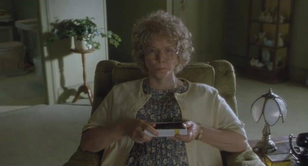 И старушка, понятия не имея, что проглатывает под видом розовеньких и голубеньких пилюль, день за днем скатывается в наркотическую зависимость. Пришедший с подарком (домашний кинотеатр!) сын, по скрежетанию зубами и необоснованной эйфории сразу понимает причину возбуждения и похудения матери. Что характерно: испуганный Гарри настойчиво увещевает маму бросить таблетки, а сам-то и не думает бросать свою смертельную привычку. Не может.