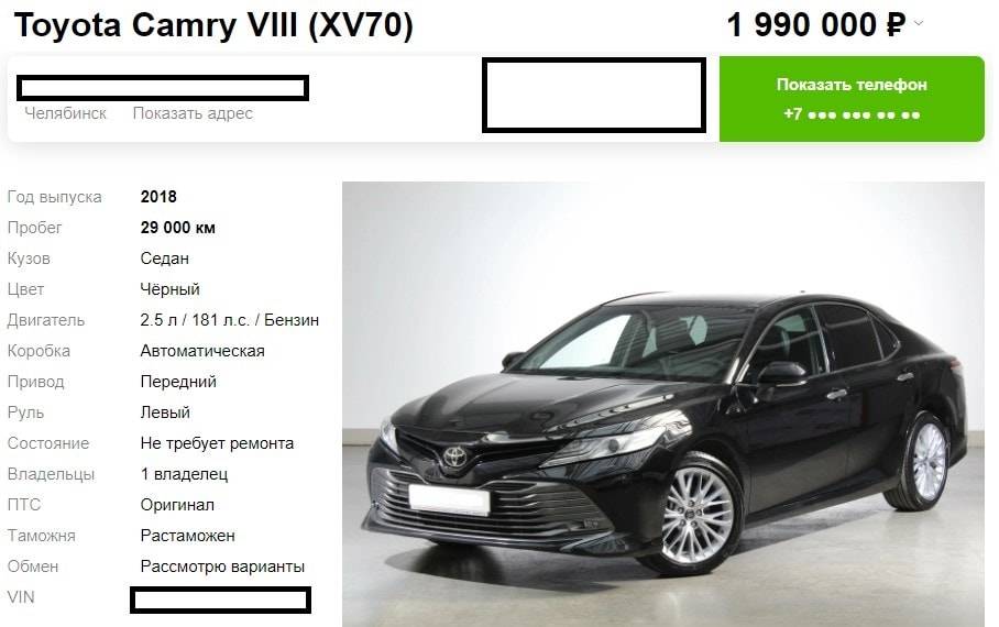 При этом «Камри» с пробегом — довольно проблемный автомобиль. По статистике avtocod.ru, «чистой» продается только каждая третья машина. Каждая вторая имеет расчет ремонтных работ, каждая третья — ДТП, каждая пятая — неоплаченные штрафы. Часть «Камри» числится в лизинге или залоге или используется в такси. Также есть экземпляры, находящиеся в розыске: