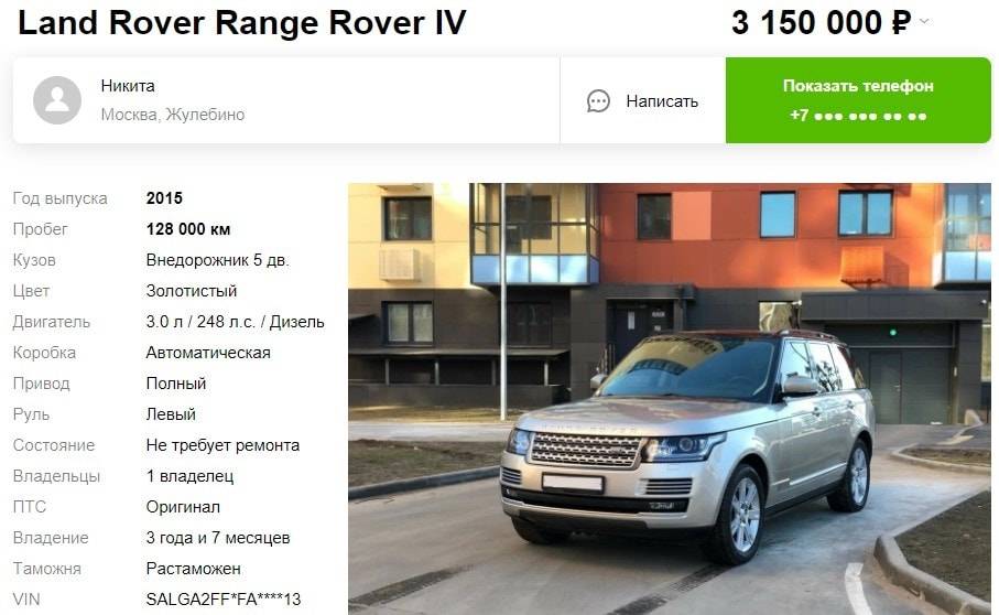 В список самых шумных премиалов попал и Land Rover Range Rover IV, за который просят от 3 млн и выше!