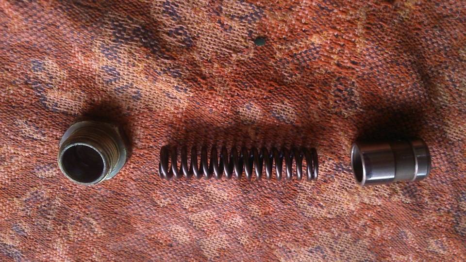 - Затем устанавливаем пружинку и заворачиваем пробку с уплотнительным кольцом, также смазанным предварительно.