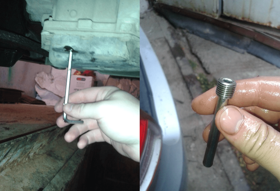 Следующий ход – завинчивание сливной пробки, после того как жидкость окончательно стекла;