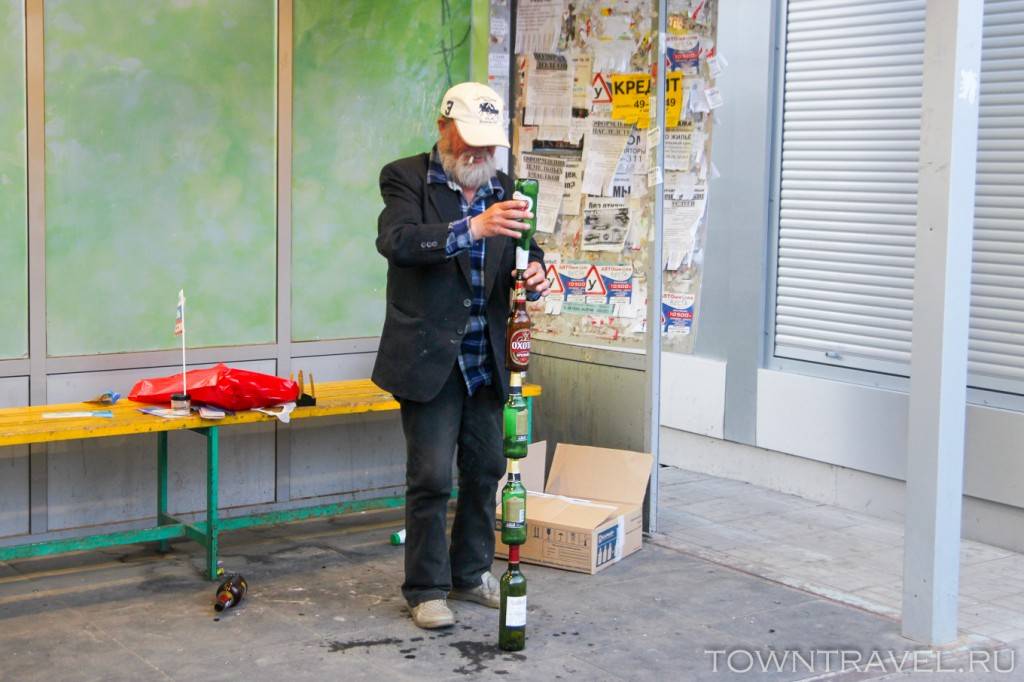 Существует мнение о том, что Питерские бомжи настолько интеллигентны, что собирают бутылки исключительно от марочных вин, а макулатуру сдают исключительно «Науку и жизнь». Так вот, Чебоксарские бомжи решили не отставать от своих друзей-героев анекдотов из Питера — с недавнего времени бутылки они не сдают, а показывают при помощи них фокусы на остановках. Для пассажиров время ожидания автобуса и троллейбуса с таким представлением проходит незаметно. Вот такая необычная местная достопримечательность!