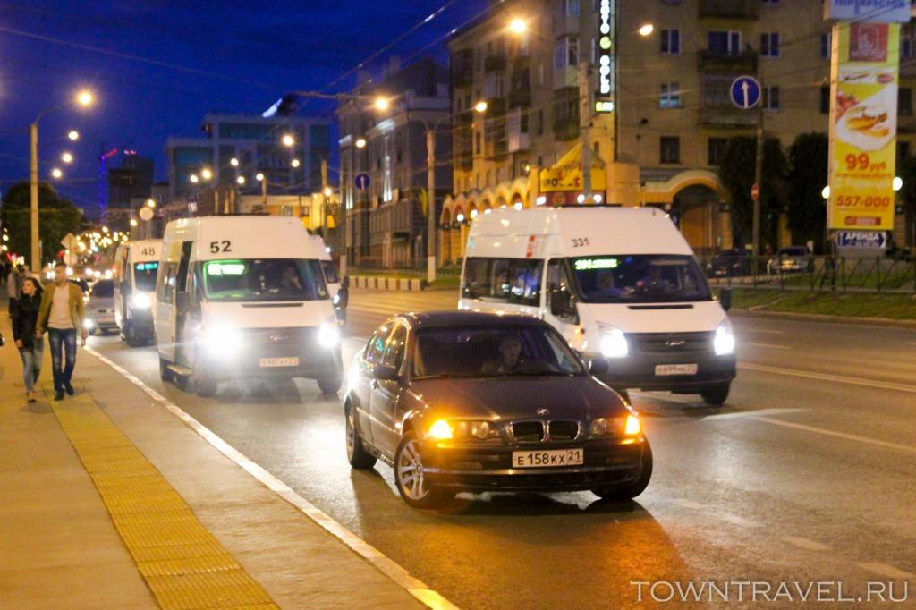 Конечно, не обошлось в Чебоксарах и без маршруток, но здесь они, в отличие от других городов, работают централизовано, микроавтобусы как на подбор неплохие — нормальной вместительностью и в хорошем состоянии, после оплаты все пассажиры сразу получают билеты (Система «Дотянись до билета и оторви самостоятельно, поскольку водитель занят сбором денег с пассажиров» здесь, к счастью, не действует).