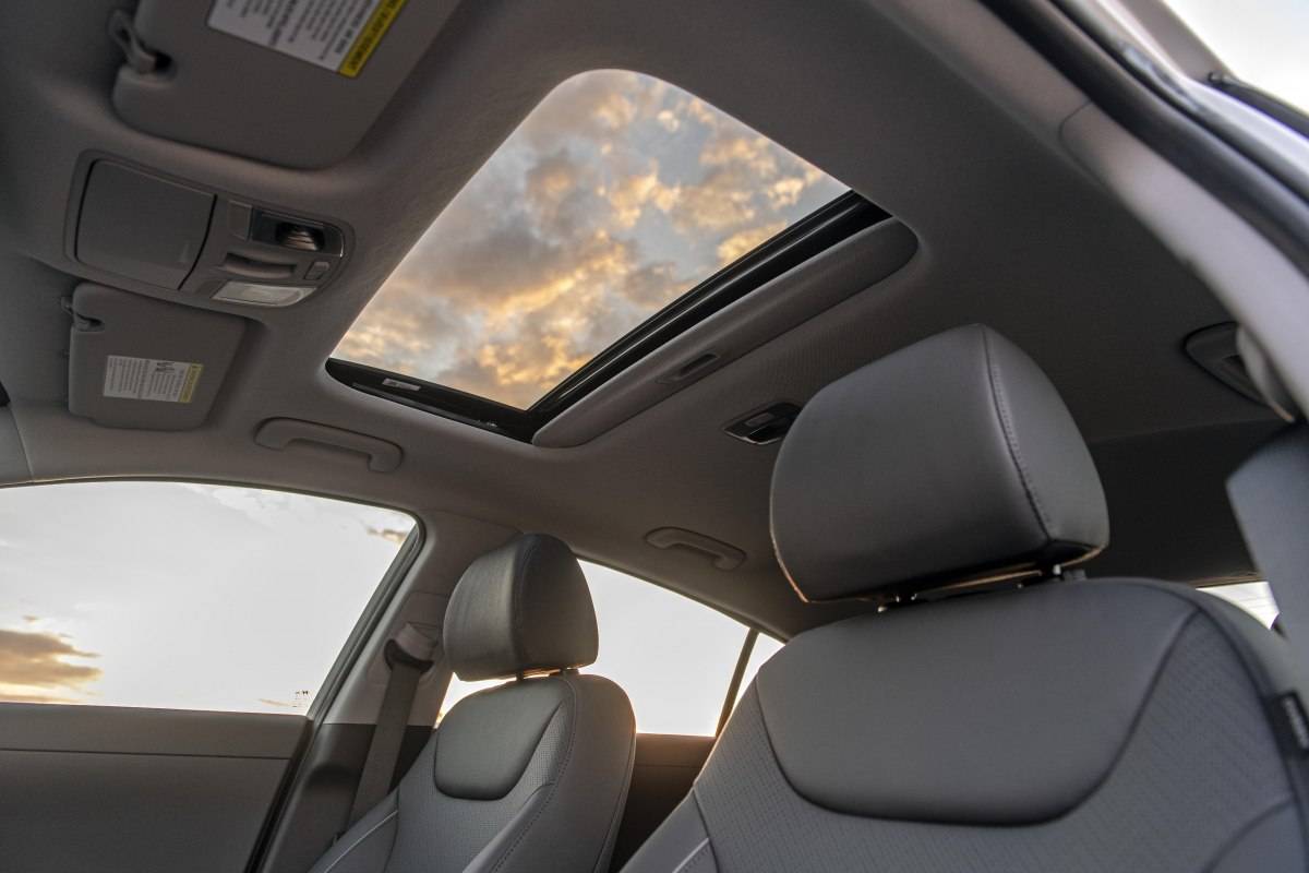 Сбоку Ioniq мало чем отличается от других хэтчбеков Hyundai. Зато сзади корейская модель более напоминает своих основных конкурентов. Задранная корма у Ioniq дополняется большим спойлером, объединенным со светодиодными фонарями. Дизайн заднего бампера меняется в зависимости от типа силовой установки. У гибридных версий он имеет пластиковую вставку, обрамляющую номерной знак. Но во всех модификациях на заднем бампере присутствуют компактные дефлекторы.