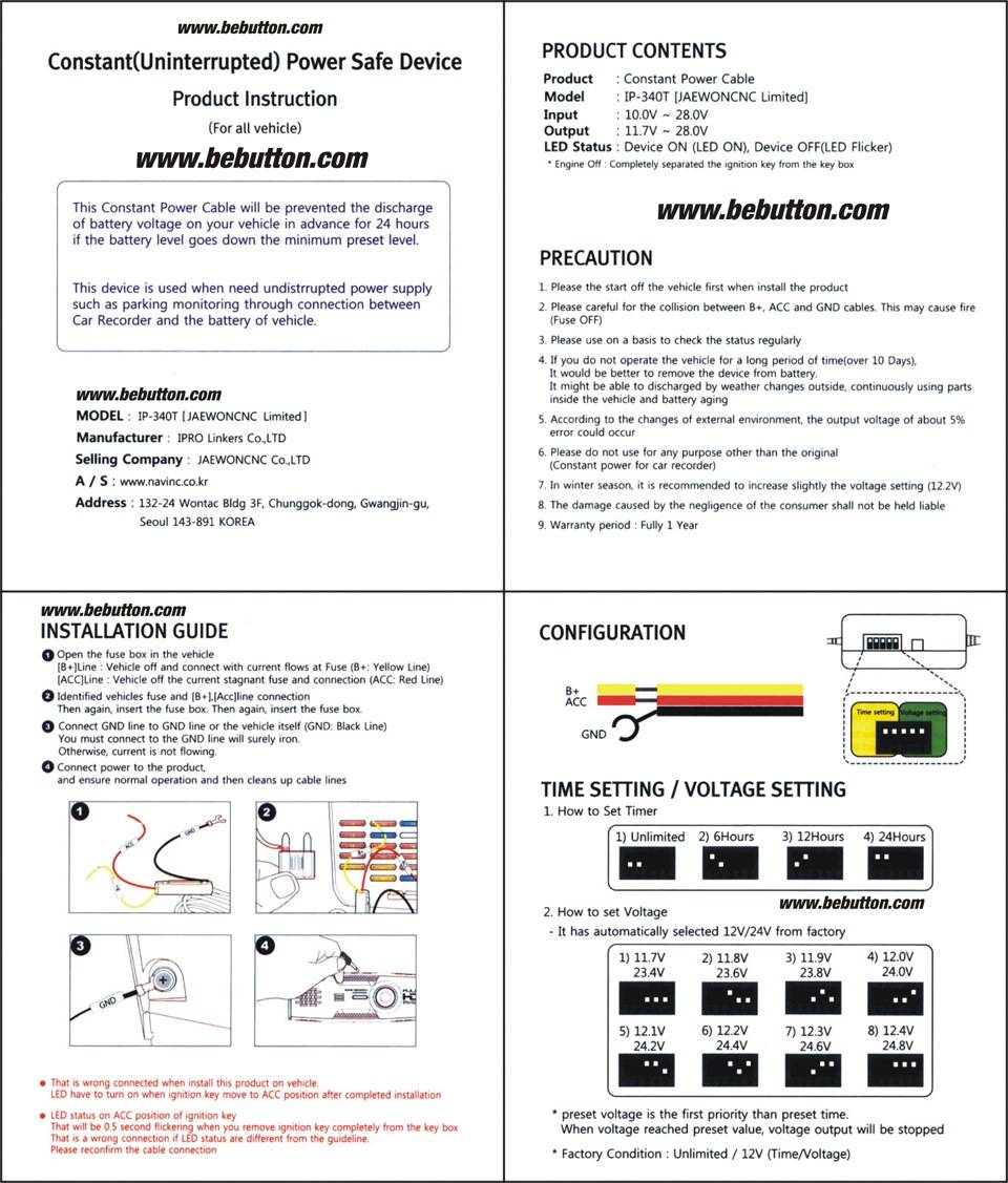 Назначение этой коробочки — подавать питание от аккумулятора при заглушенном двигателе, пока:1) аккумулятор не разрядится до выставленного лимита;2) не пройдет определенный период времени;3) наступит или то или другое событие.Как я понимаю, конкретно эта модель уже снята с производства, но есть аналоги от других производителей. Немножко смутила инструкция на корейском в комплекте с коробочкой, нашел в интернете на английском. И двусторонний скотч зажопили или вообще не включили в комплект.