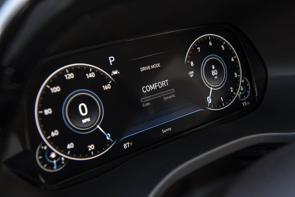 - Передняя панель предлагает блочный конструктив цифрового приборного щитка и дополненного многочисленными командными функциями монитора штатного мультимедийного комплекса.