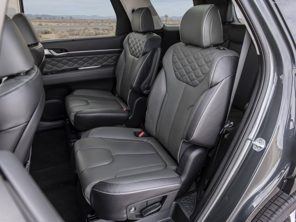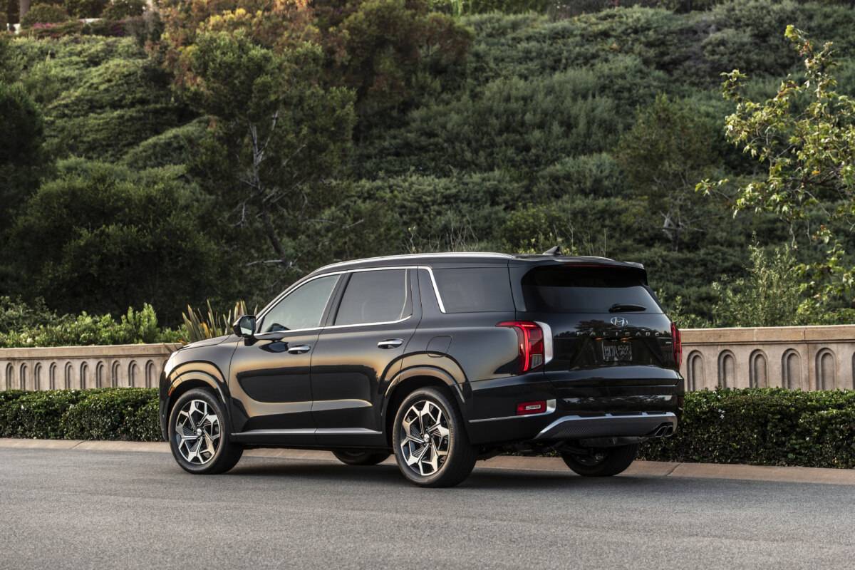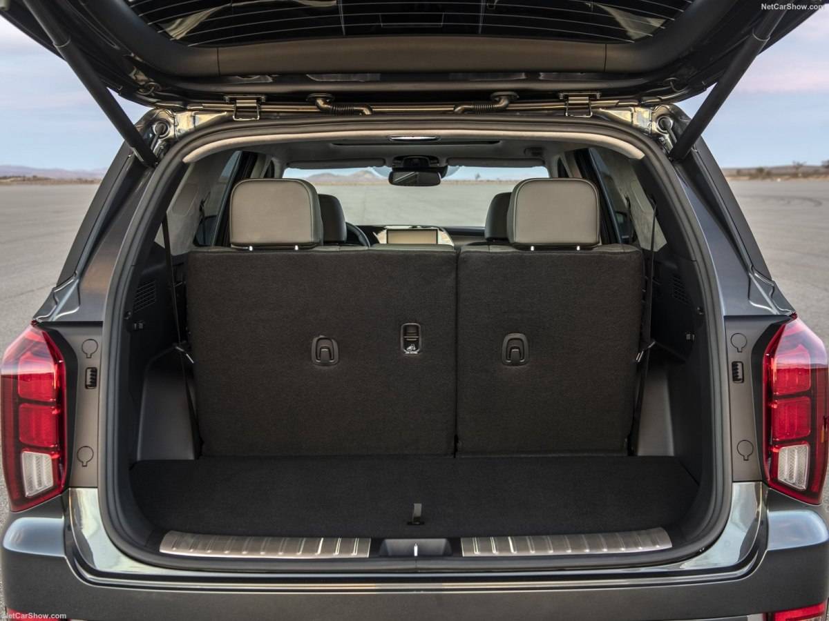 В дизайне и компоновке кормы просматриваются узнаваемые детали американского стиля. Новая модель Хендай Палисад образца 2021 года идентифицируется по большому формату и наклону заднего окна, квадратной конфигурации и характерному рельефу двери багажника, вертикальным блокам многофункциональной кормовой оптики.