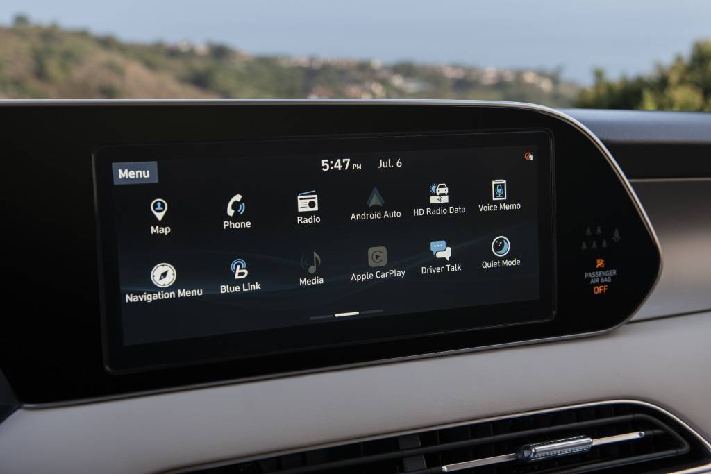 Салон у Palisade отличается эргономичным исполнением. Все кнопки и шайбы управления встроенной электроникой сосредоточены на очень малой по площади зоне. Часть клавиш размещены на приподнятой части трансмиссионного тоннеля, который плавно перетекает в центральную консоль. Примечательным также является наличие перфорированной кожи на дверных картах и передних кресел с развитой боковой поддержкой.