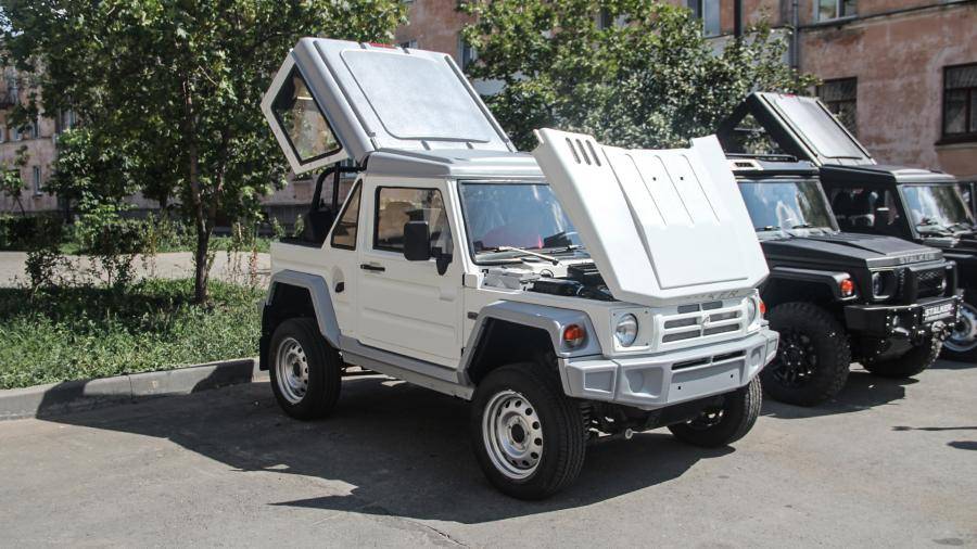 Пластиковый капот открывается, как на Lada 4×4. Под ним знакомый мотор объемом 1,7 л и мощностью 83 л.с.