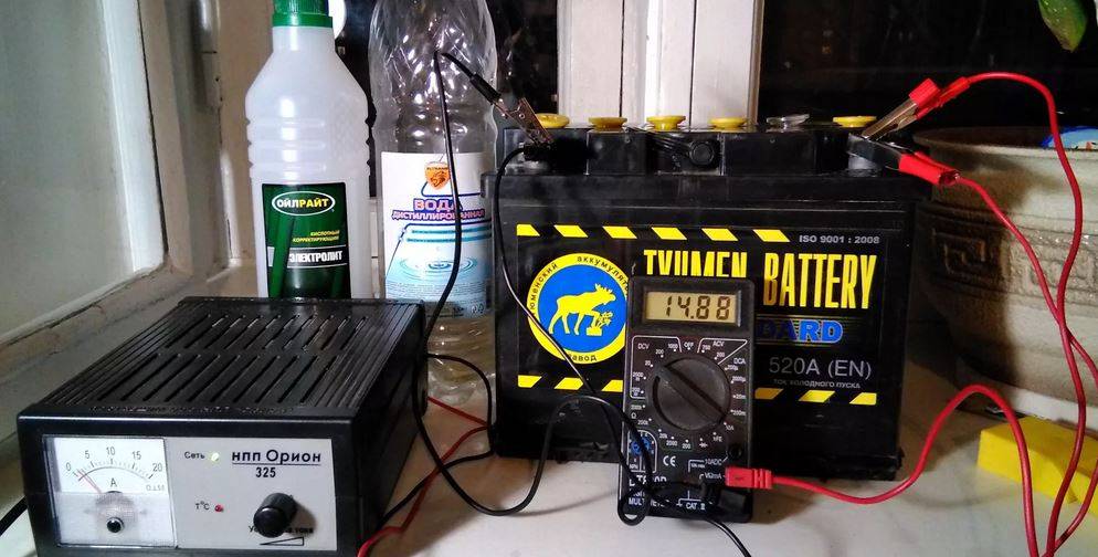 - Аккумулятор ставится на зарядку и в процессе этого проверяется плотность электролита. При необходимости корректируется состав раствора.