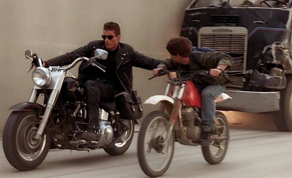 Культовой гонкой стала погоня злобного Т-1000 на грузовике Freightliner FLA 9664 за Джоном Коннором, удиравшем на мотоцикле Honda XR 100. Ну а на помощь пареньку спешил и сам терминатор Т-800, который мчал на Harley-Davidson Fat Boy. Погоня длится всего 4 минуты, но за это время мы успеваем увидеть несколько весьма сложных трюков.