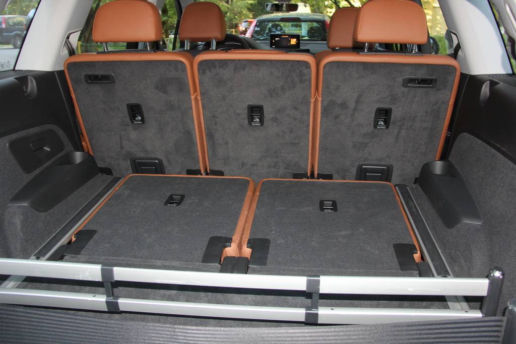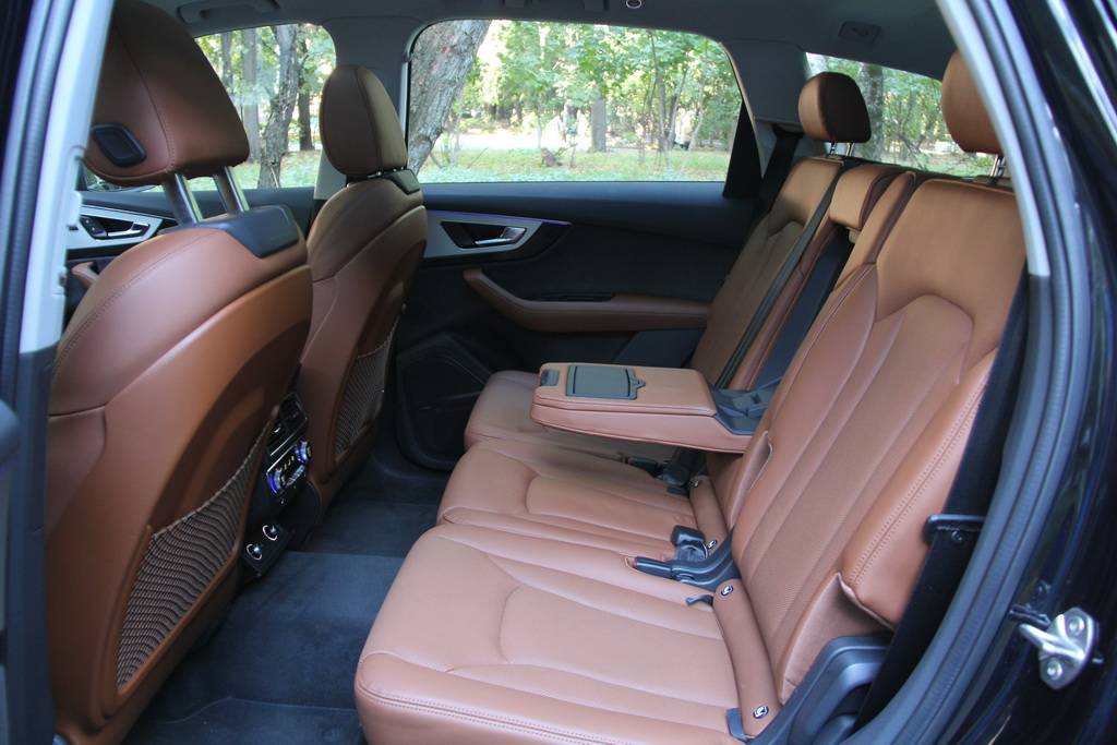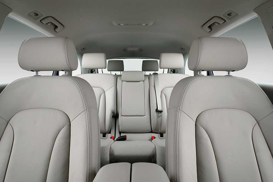 По желанию новый Q7 можно оснастить семью сиденьями, что дает возможность установки до шести детских кресел. Посадку на последний ряд облегчает хитроумная функция Easy-Entry. Спинки обоих задних сидений могут быть подняты или опущены нажатием кнопки из багажника или от водителя. Багажник такой версии поглощает при необходимости вплоть до 1.955 литров и образует плоский пол.
