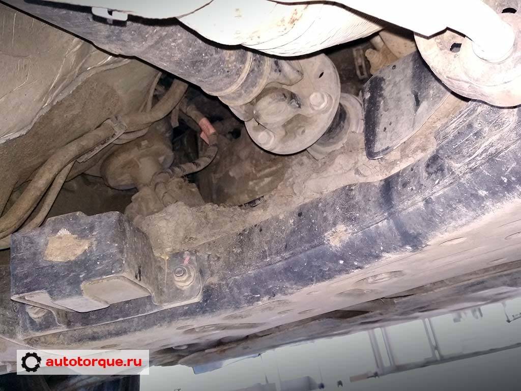 Полноприводная трансмиссия с электрогидравлической муфтой Dynamax знакома еще по предшественнику. К сожалению, спустя время стали всплывать характерные для нее неисправности. Прежде всего, это коррозия и износ шлицевого соединения раздатки и дифференциала коробки передач (60 000 рублей за ремонт), а так же шлицевого соединения в районе опоры правого переднего приводного вала.
