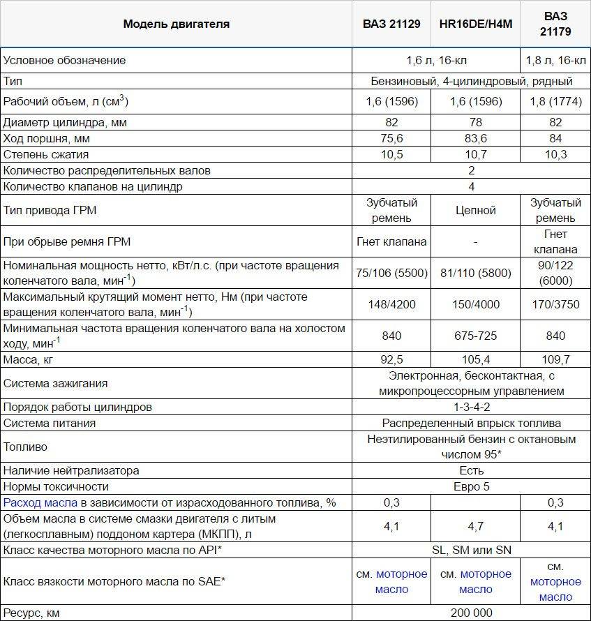 Сравнительная таблица двигателей Лада Веста и XRAY: