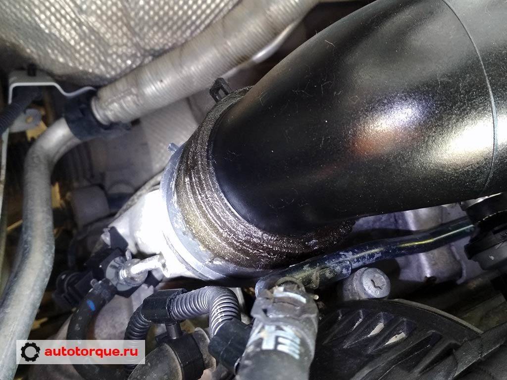 После 100 000 км турбина и подводящие патрубки начинают покрываться масляной шубой