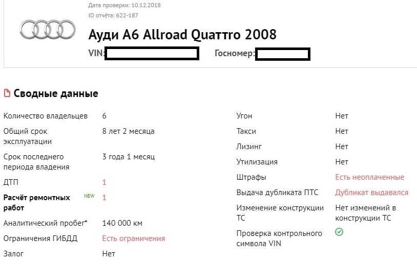 «А6» остаётся одной из самых популярных иномарок. За последний месяц через сервис «Автокод» ее проверили 11 439 раз. Некоторые автомобили продавались с «букетом» проблем, например, как этот: