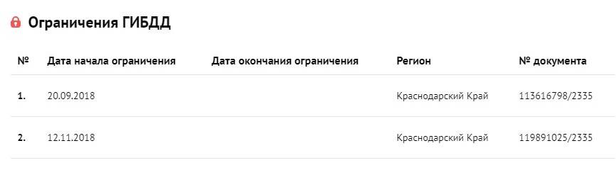 Ограничение, судя по отчёту, свежее — от 12.11.2018 года