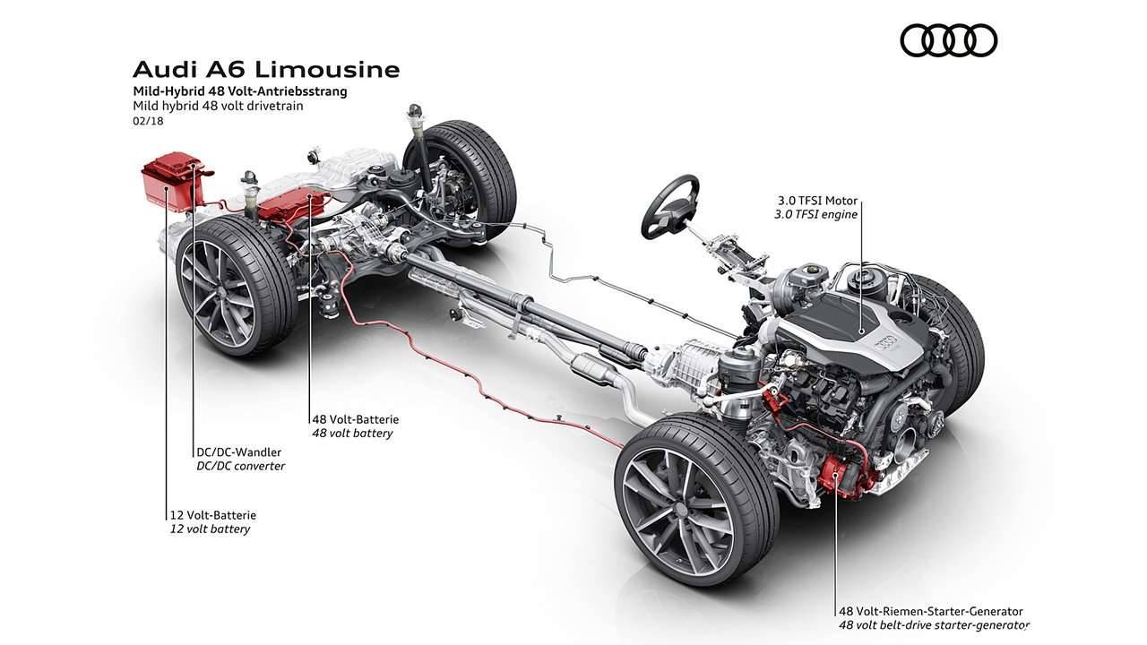 Привод распределяется по всем колесам системой quattro ultra, технически просто подключающей задние колеса при необходимости. Бензиновый мотор получает систему мягкого гибрида Mild Hybrid (MHEV) с 48-вольтной батареей.