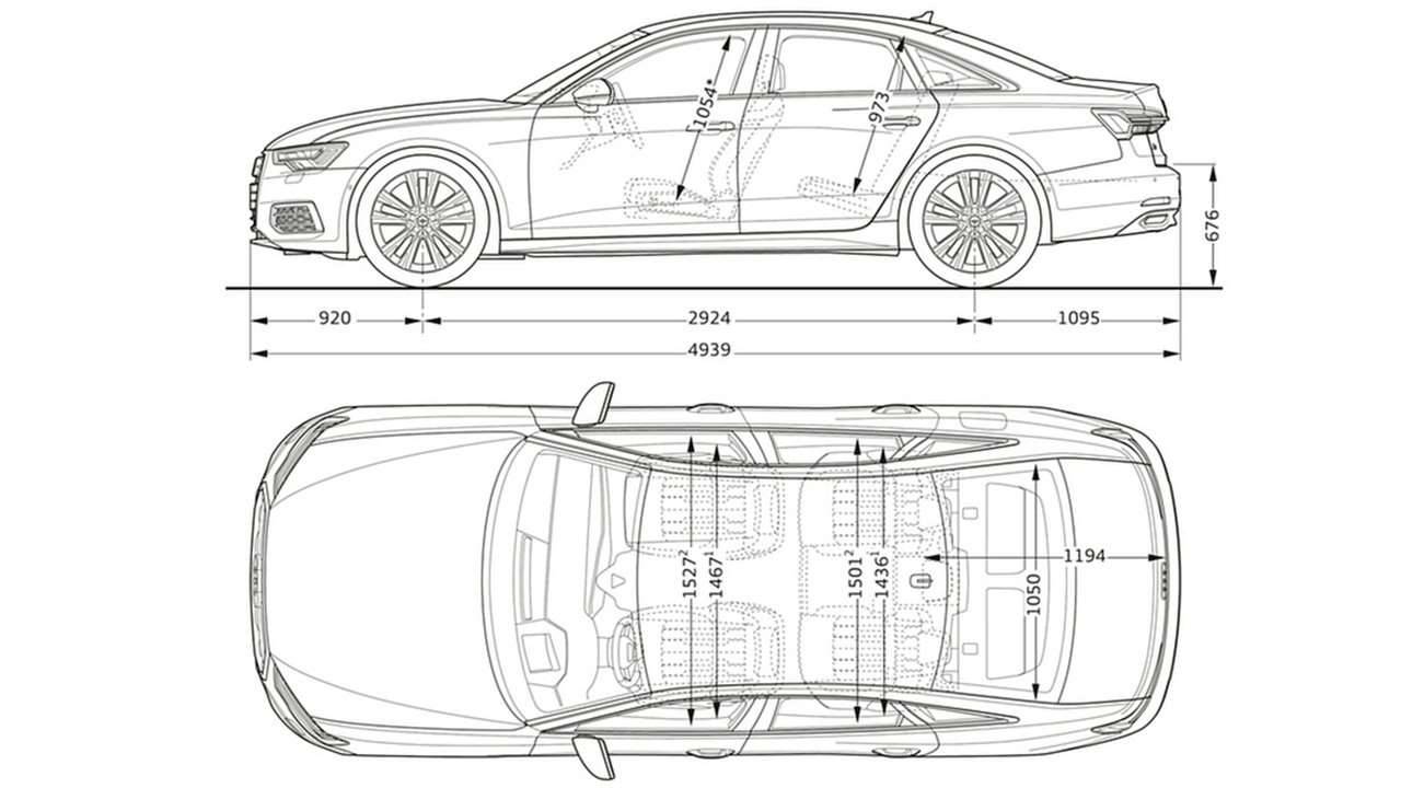 Ауди А6 2019-2020 подросла в размерах, свободного места стало больше. Внутри ширина пространства достигает 1,5 метра. У задних пассажиров есть небольшой дисплей настройки климата, прикуриватель и два USB-порта.