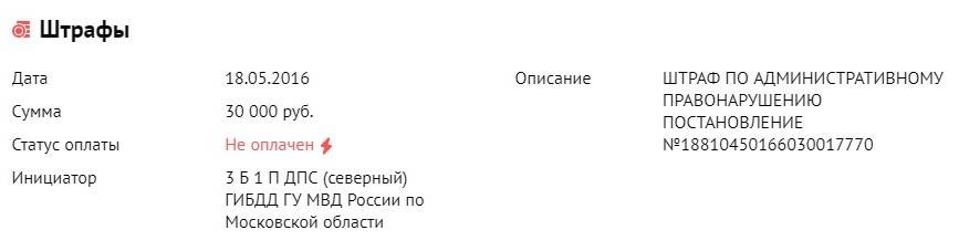 У владельца авто есть неоплаченный штраф в 30 тысяч рублей! Не сумма штрафов, а один штраф! За одно нарушение! Такую сумму выписывают водителям, управляющим машиной без прав или передавшим управление человеку, не имеющему права управлять ТС.