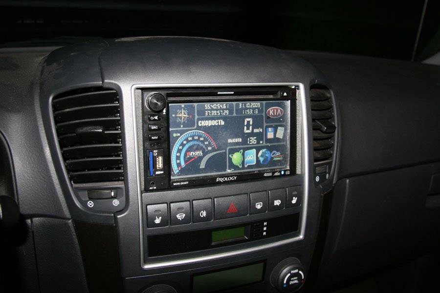 - Далее, производится установка мультимедийной системы Prology в торпедо. В центральной консоли любого транспортного средства имеется специальный разъем — в него монтируется девайс. Предварительно в этот разъем необходимо установить так называемую шахту.