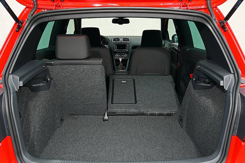 Общая платформа PQ35 сказалась на внутреннем пространстве Golf VI – по вместительности багажный отсек, равно как и салон, полностью аналогичен своему предшественнику. Если сравнить цифры объемов грузовых отсеков, то выяснится – они у «шестерки» они средние по сравнению с конкурентами