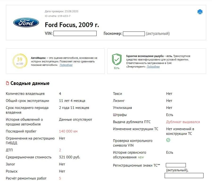 При покупке второго «Фокуса» надо каждый раз держать в уме смотанные пробеги, «уставшую» механику, таксопарковую биографию. Все эти вещи в два клика можно увидеть прямо на экране смартфона — достаточно знать гос- или VIN-номер, чтобы проверить приглянувшуюся машину — вся история будет видна как на ладони. Например, этот «Фокус» продается якобы в идеальном состоянии, с доками все в порядке.