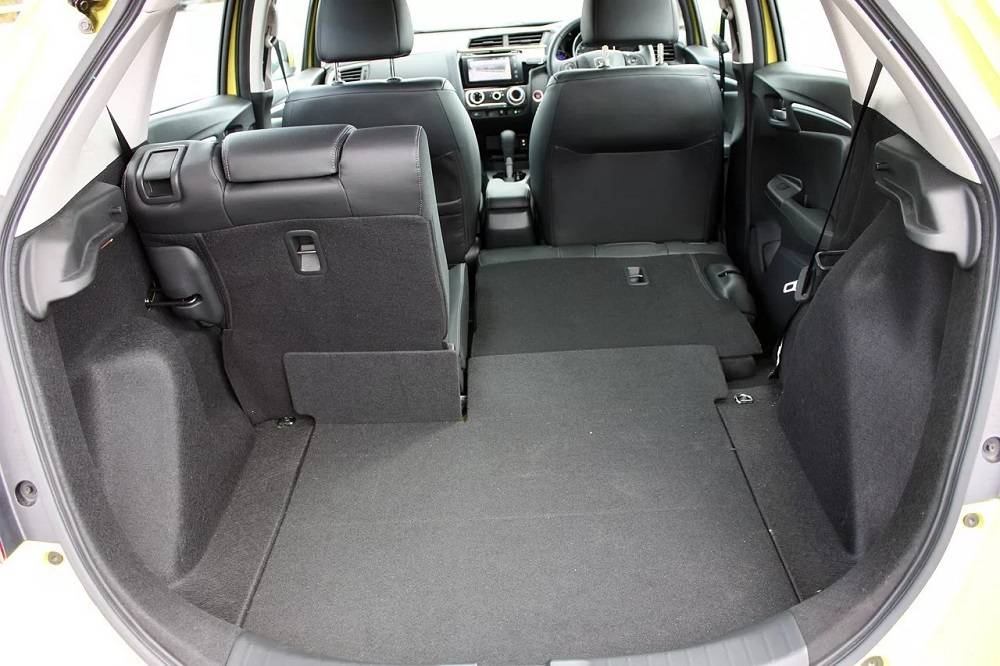 Из-за особенностей размещения бензобака (у Fit он под передними сиденьями) и отсутствия запасного колеса под полом багажника размещается полезная ёмкость объёмом 64 л и высотой 23 см