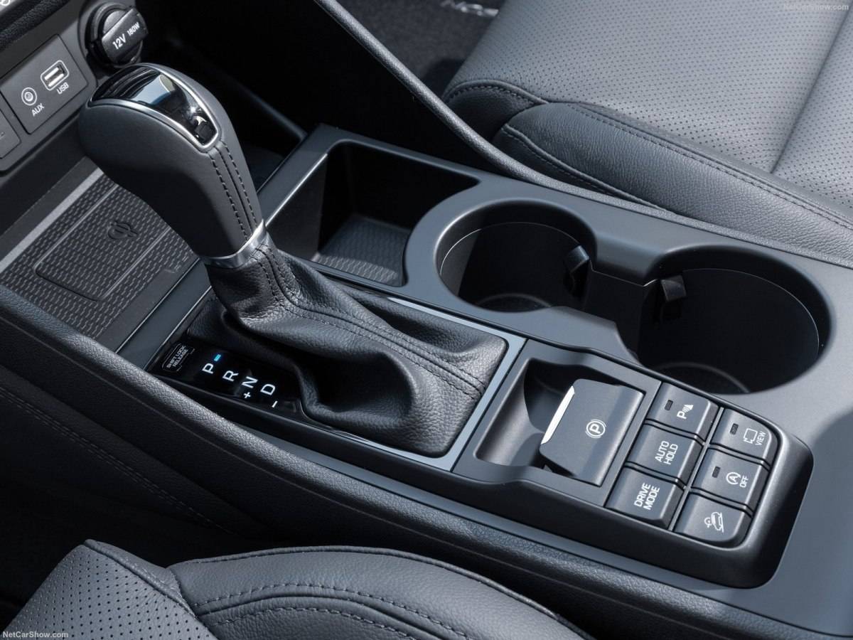 Не менее интересным получился центральный тоннель Хендай Тусан, между передними сиденьями. В самом начале расположена панель управления системами безопасности и комфорта, далее лепесток для переключения передач (в случае механической трансмиссии будет установлен рычаг кпп), кнопка электромеханического ручника и пара подстаканников. Заканчивается центральный тоннель массивный подлокотник и пара воздуховодов с панелью управления для пассажиров второго ряда. Основной минус – черная глянцевая накладка, на которой практически сразу остаются отпечатки пальцев, а со временем появятся микроцарапины.