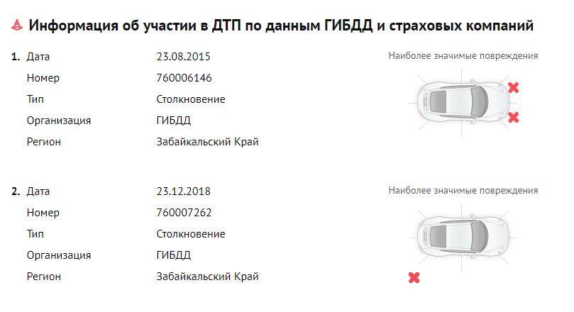 Отчет avtocod.ru показал, что машина как минимум дважды побывала в аварии. Повреждена передняя часть и задняя правая части:
