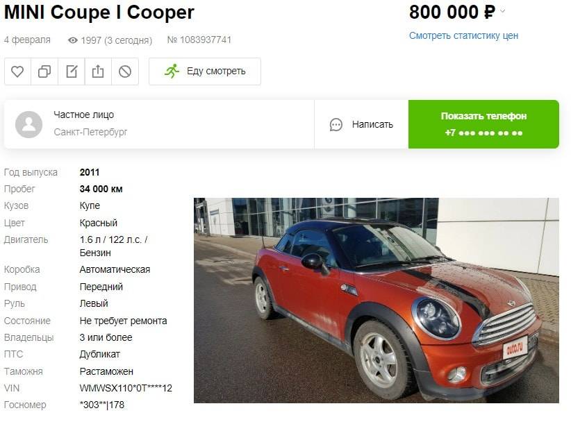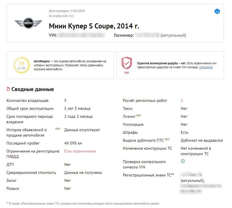 Проверка показывает, что «Мини Купе» эксплуатируется около семи лет и за это время сменил семь собственников: