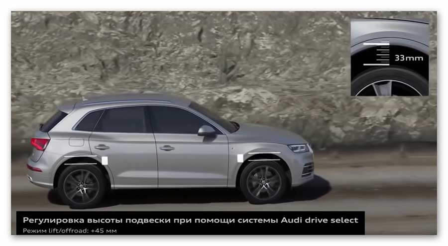 Audi Q5 FYB оснащается обеими независимыми подвесками многорычажного типа, при этом автопроизводитель предлагает ее на выбор в четырех разных версиях: