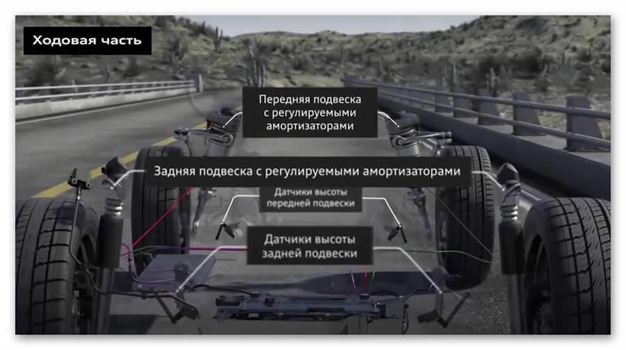 У ходовой части с электроуправлением с помощью электроники может меняться регулировка жесткости амортизаторов.