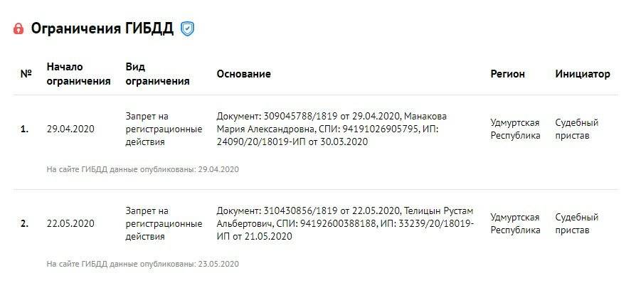 Ограничений два, оба выписаны в 2020 году.