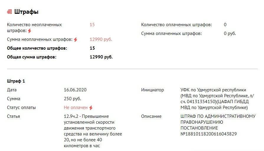Все штрафы, числящиеся за машиной, заработал последний хозяин. Он, судя по списку нарушений, нередко превышает скорость и любит оставлять авто на газоне.