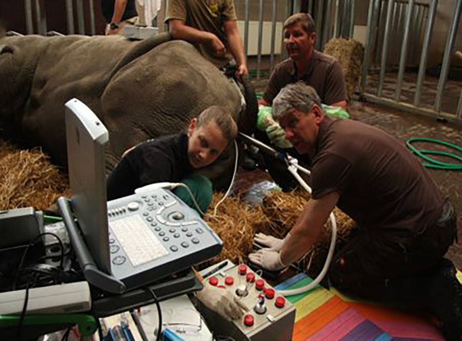 - Учёные извлекают яйцеклетки самки южного белого носорога