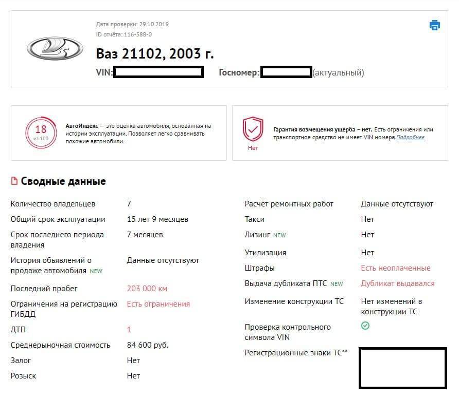 Владелец указал, что на авто наложены ограничения, а проверка нашла еще скрученный пробег, небольшое ДТП и пару неоплаченных штрафов за езду по полосе для общественного транспорта: