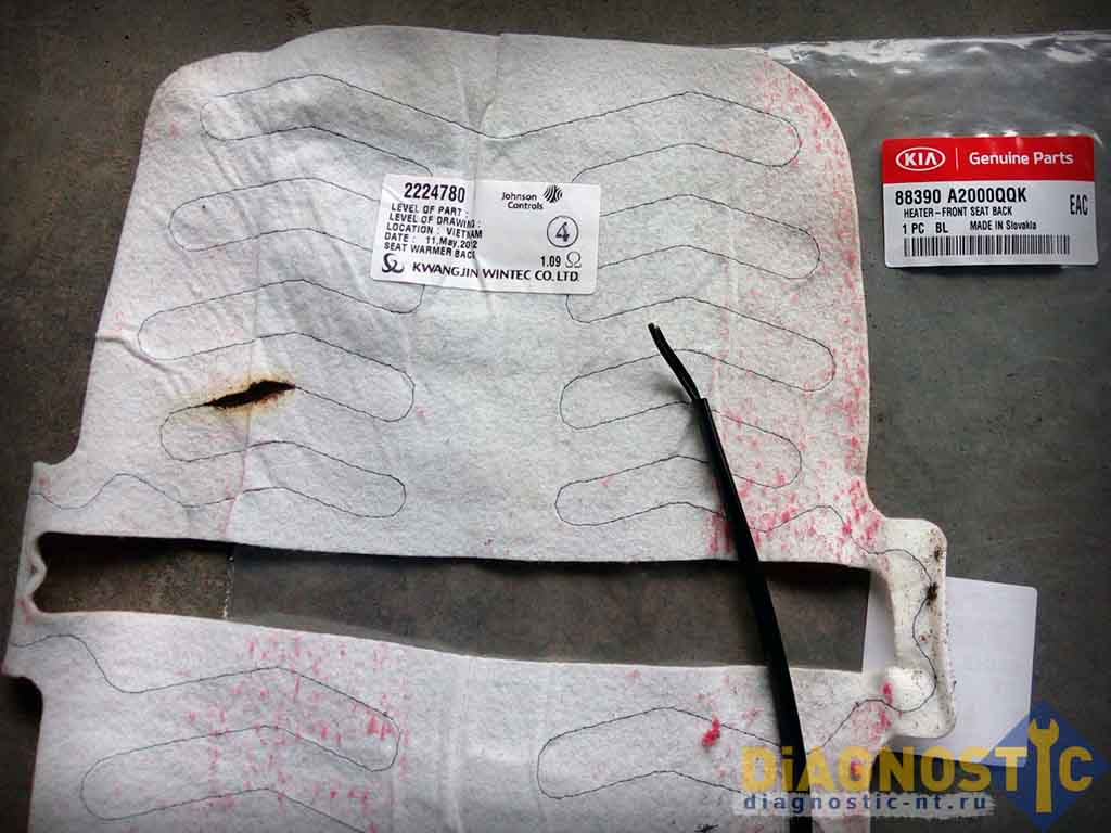 Таким образом оплавляются нити обогрева передних кресел. Даже не думайте опираться на подушки коленями