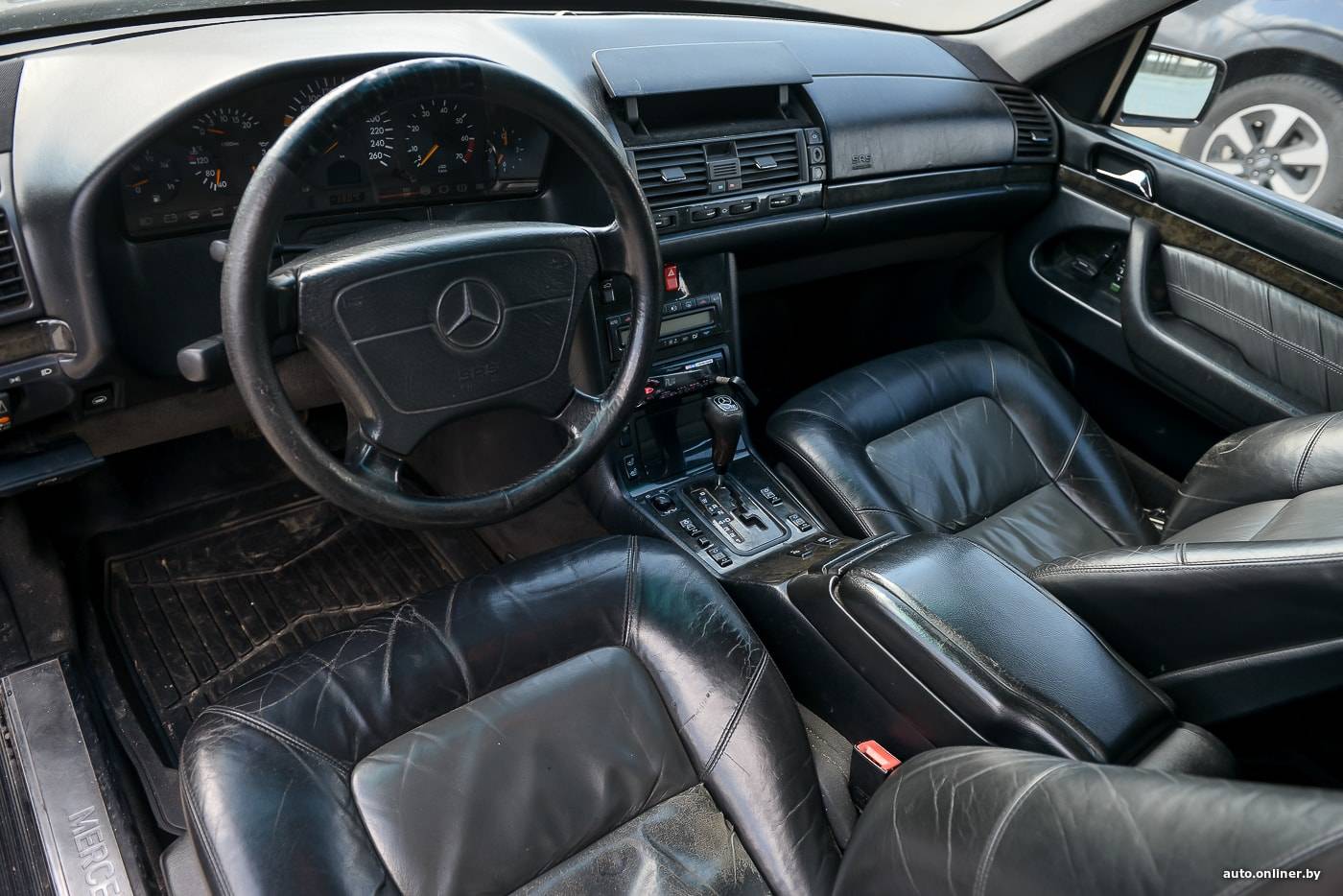 Поклонники старых Mercedes заметят, что в салоне W140 много элементов от W124. Центральную консоль можно назвать «левой» — из-за большой ширины салона она расположена ближе к водителю. У S600 по умолчанию было много опций, часть из них даже сегодня выглядят достойно: электрорегулировки передних (с памятью) и задних кресел, подогревы, ESP, полный электропакет (включая привод задней шторки), электропривод регулировки руля, круиз-контроль, 2-зонный «климат» и мн. др.