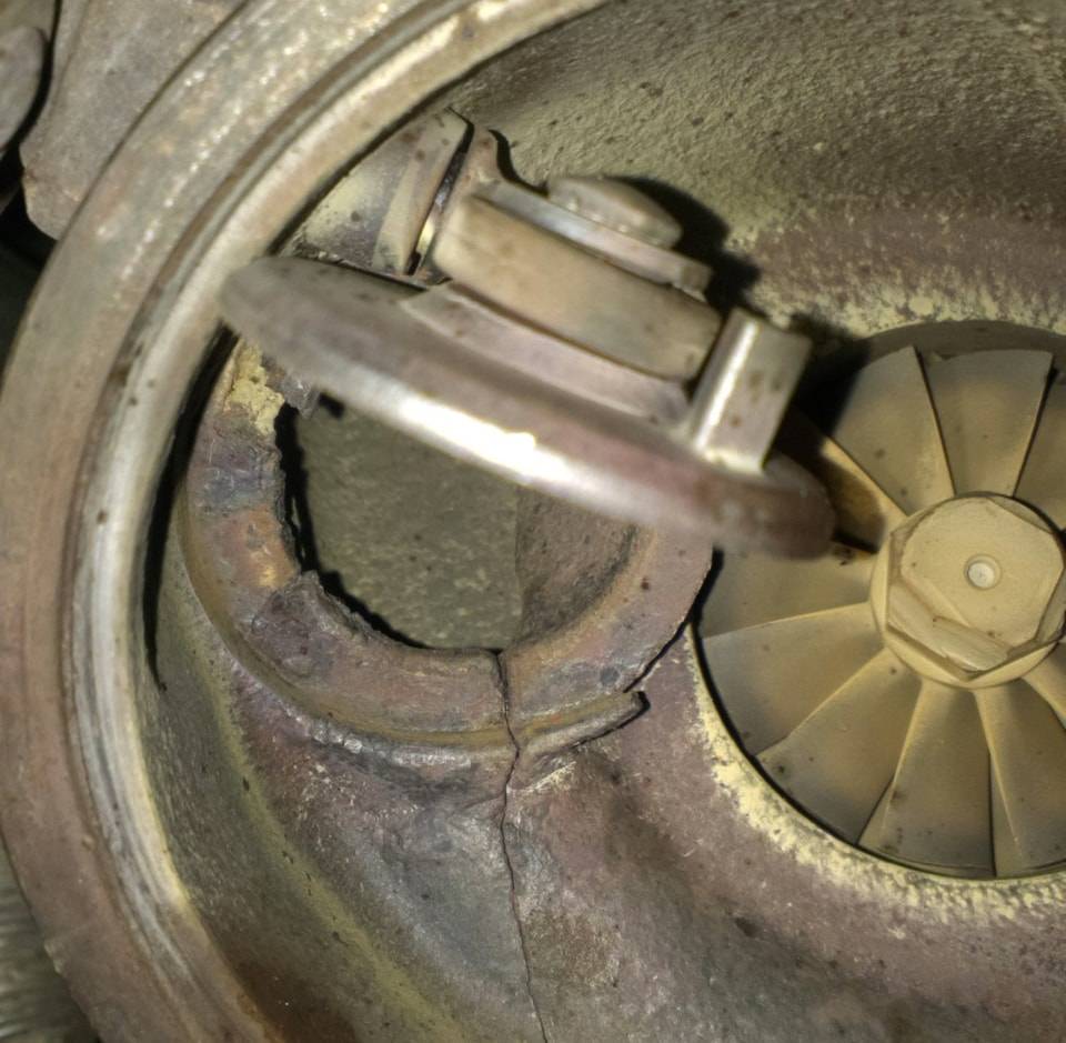 Наличие отверстий в турбине не остановит автомобиль — он будет ехать, а если трещины небольшие, то турбина даже будет работать. Но станет заметна разница в отклике на газ — нагнетатель будет «дуть» только на очень высоких оборотах. Трещины появляются из-за высокой температуры и слишком тонких стенок турбины, которые стали очередной жертвой облегчения машин. При этом нельзя сказать, что такие трещины — типичная проблема для моторов ЕА888. Встречается неисправность нечасто, да и проблема некритичная — даже при полном отказе турбины автомобиль будет исправно ехать.