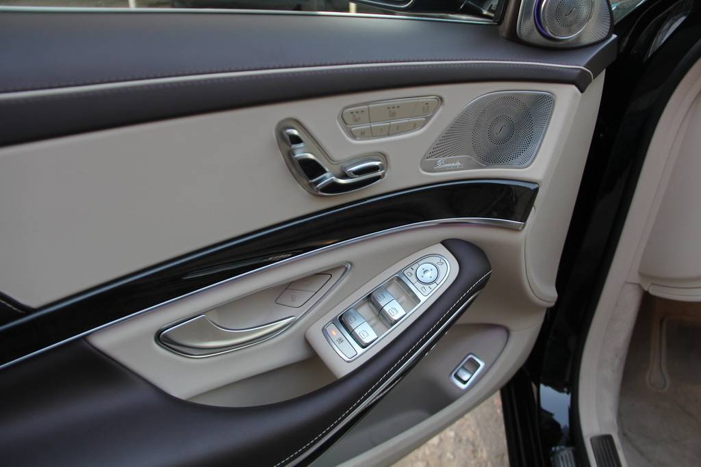 Вход и выход из машины удобен благодаря широким и высоким дверям. Разделительная стеклянная перегородка между задним отделением и кабиной водителя опускается автоматически. Одним нажатием кнопки она из прозрачной становится совершенно непроницаемой, или наоборот. Оградить пассажиров от посторонних глаз призваны автоматические оконные шторки по периметру задней части салона — они предусмотрены в серийной комплектации.