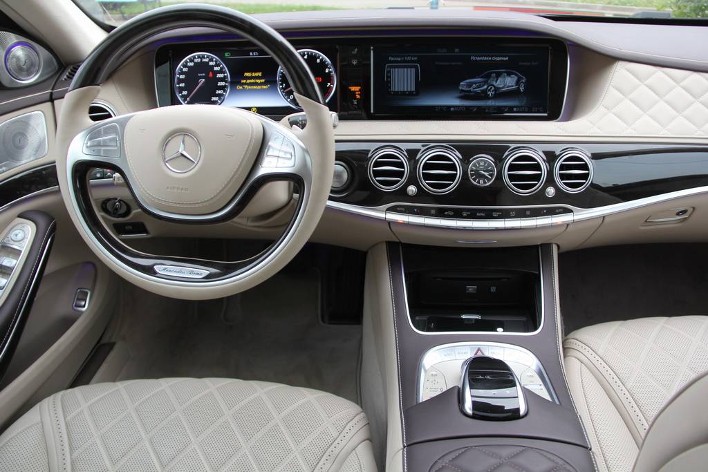 Передняя часть салона в точности такая же, как у обычного “Мерседеса” S-класса.