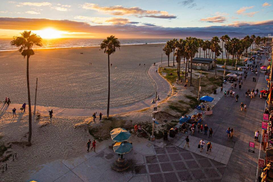 Мелкий мягкий песок, развитая инфраструктура, наличие спортивных площадок под открытым небом – всё это пляж Венис Бич. Работают тут и уличные художники, можно заказать свой портрет. Также неподалёку находится отель Venice Beach Waldorf, где останавливался Чарли Чаплин. Интересно будет осмотреть такое историческое место. А крыша отеля является отличной смотровой площадкой.